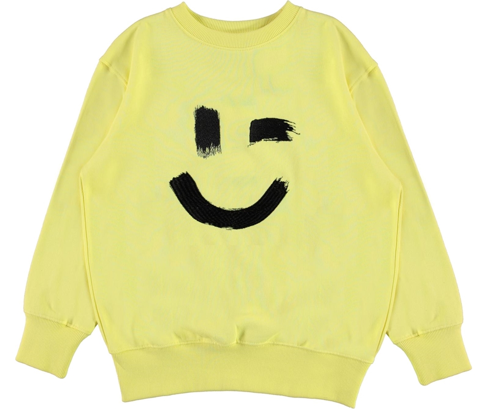 Molo has made their own ice cream menu poster with classics and new favourites. Choose your favourite on this light blue Carli dress. The dress is sleeveless and has a striped ribbon at the waist. It has a zip closure at the neck.